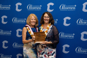 In accepting her award, Maroun called Chaminade a very special place that provided her with a “wider world view and lasting friendships.” Maroun added, “How many people can say they still visit and text with their professors 50 years later? That is the Chaminade experience.”