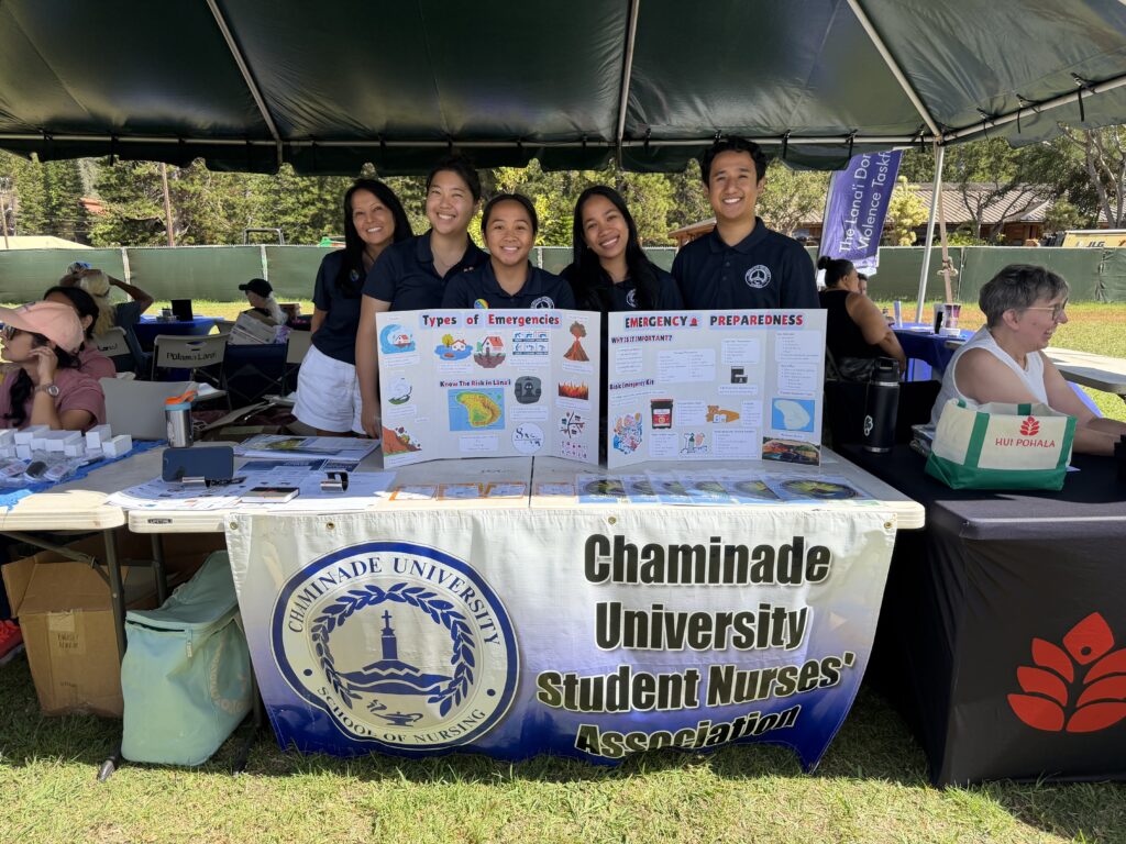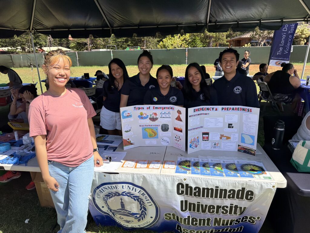 The award-winning initiative focused on increasing emergency preparedness awareness for residents of Lānaʻi City through accessible, culturally responsive education tailored to the unique needs of the rural island community. As part of the project, Chaminade nursing students traveled from Oʻahu to Lānaʻi to participate in a community health fair, where they presented information on a variety of natural disasters that can affect Hawaiʻi, including flash floods, earthquakes, volcanic eruptions and tsunamis. Students also shared practical steps families can take to prepare and respond during emergencies.